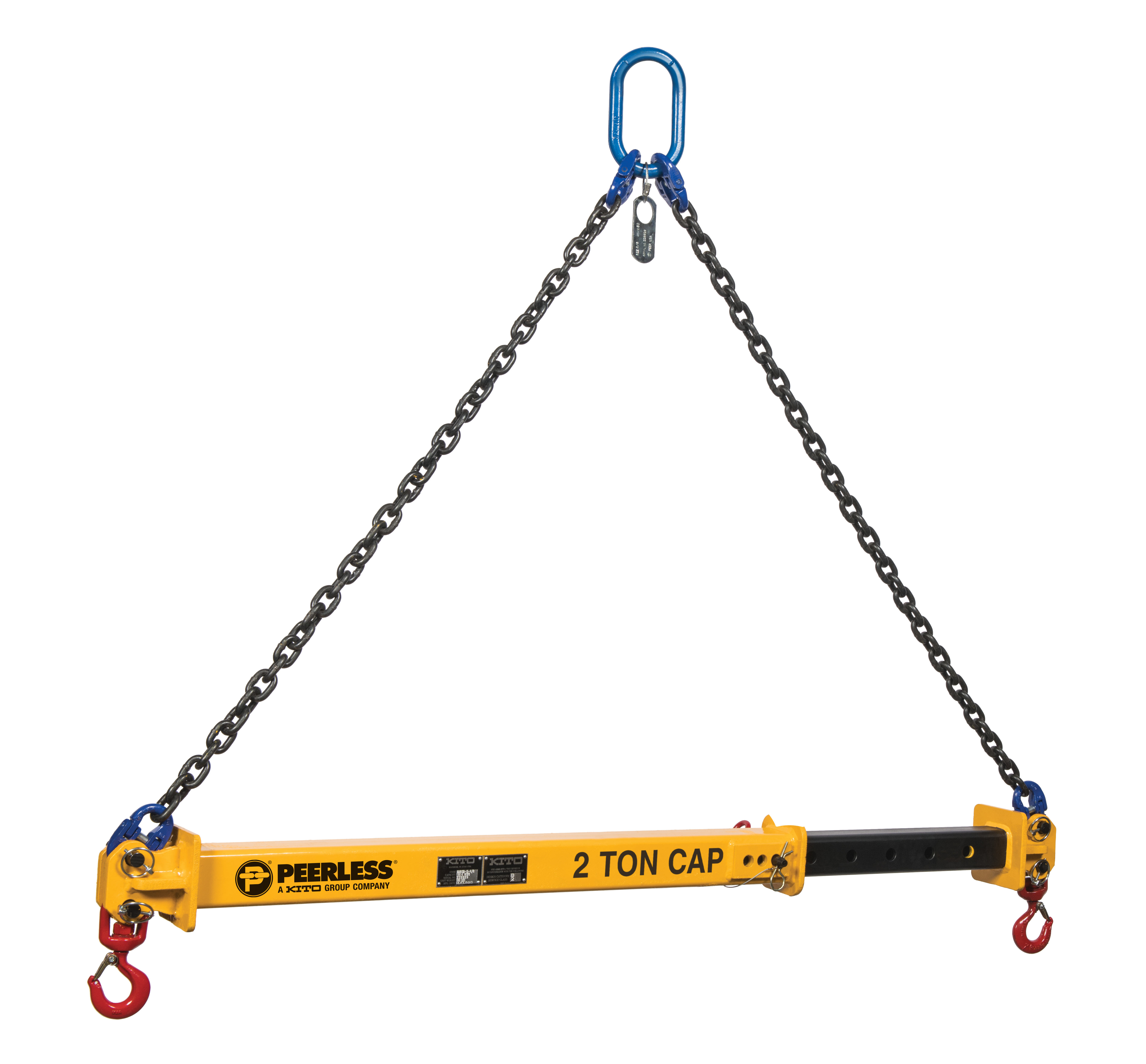 A spreader beam has limited configurations available to the rigger. Spreader beams can be fixed or adjustable. They can also be comprised of square or round tubing in a box style spreader beam design. End Cap Spreader Beams allow the rigger to the opportunity to stock a variety of different length Schedule 80 pipe to accommodate different loads. They must follow a matrix that will change the lifting capacity based upon the length of pipe being installed.